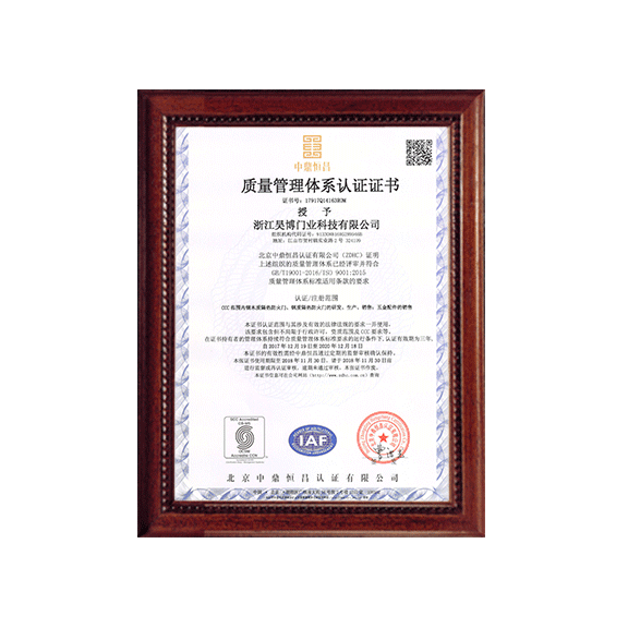公司一直以來嚴(yán)格執(zhí)行ISO9001質(zhì)量體系和ISO14001環(huán)境管理體系標(biāo)準(zhǔn),建立了完備的科研、開發(fā)、生產(chǎn)、銷售服務(wù)體系。公司是浙江省門業(yè)協(xié)會(huì)會(huì)員單位,江山門業(yè)協(xié)會(huì)理事單位,中國木材與木制品流通協(xié)會(huì)會(huì)員單位,江山市消防協(xié)會(huì)副會(huì)長單位。